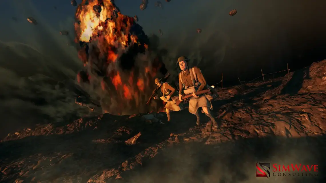 SimWave’s Vimy Ridge in Virtual Reality is a 3D, fully immersive experience that is powered by Oculus Rift technology. It features impeccable graphic design, created by the in-house SimWave design team, using Unity and Adobe Creative Suite. It also leverages Leap Motion Technology so that VR users can physically interact with the scene, handle a bayonet and the Lewis gun in 3D.
