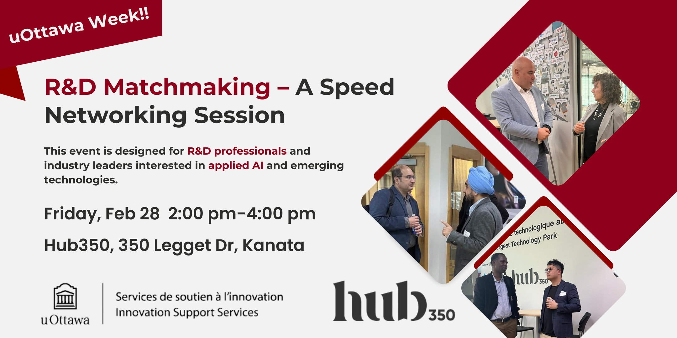 Are you an R&D leader or innovator in Kanata North looking to connect with uOttawa’s AI research experts? Join us for a fast-paced R&D matchmaking session designed to foster new collaborations and provide insights into AI-driven industry-research partnerships.