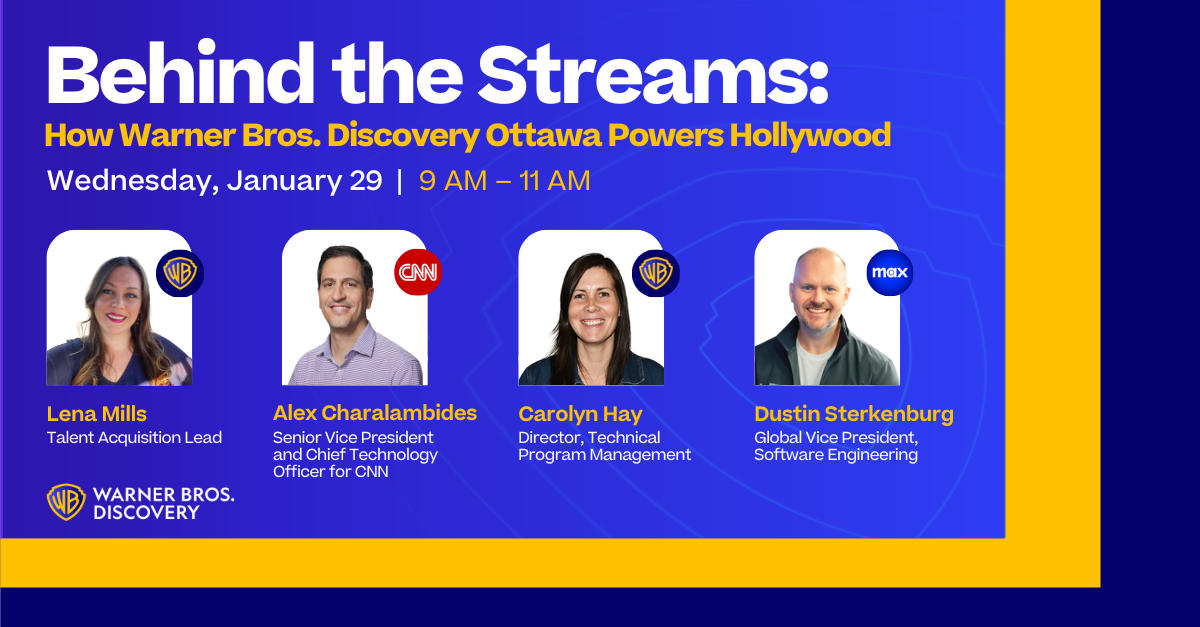 Warner Bros. Discovery is home to some of your favorite content brands like CNN, Max, HBO, HGTV, Food Network, and more. WBD’s technology teams in Ottawa play a significant role in building the platforms that run content on CNN and the Max streaming service globally! This exclusive event offers a unique glimpse into the groundbreaking technology and creativity behind these beloved media and streaming experiences.