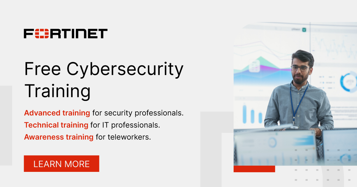 FreeLooking to learn more about cybersecurity and protecting your company from cyberthreats? Fortinet is offering free access to its comprehensive online courses through the Fortinet Training Institute.
