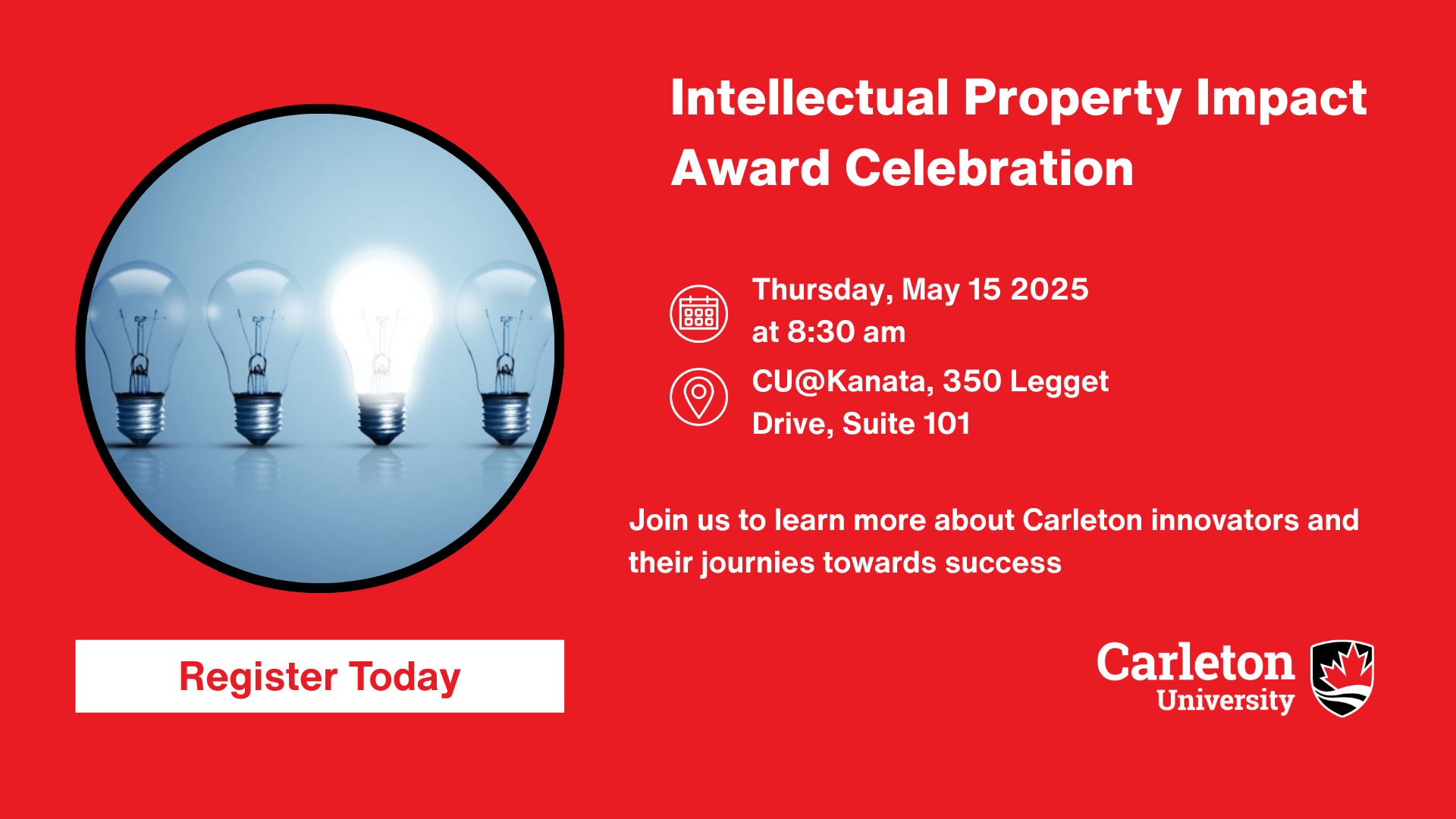 This celebratory event on May 15th will showcase Carleton innovators and their journey towards success, highlight novel intellectual property being developed at the university, provide insights on how to leverage academic collaborations to bring advanced products for market and provide a great opportunity to connect with like-minded individuals.