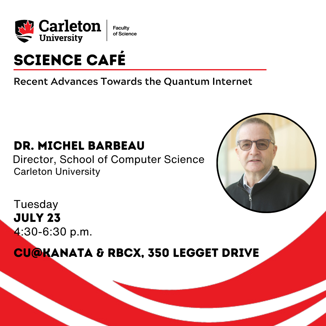 The Faculty of Science at Carleton University is excited to invite you to our upcoming Science Café event, taking place at CU@Kanata, 350 Legget Drive. This event offers a unique opportunity to delve into the science behind Quantum Internet in an informal and engaging setting right in the heart of Ottawa’s technology and innovation centre.