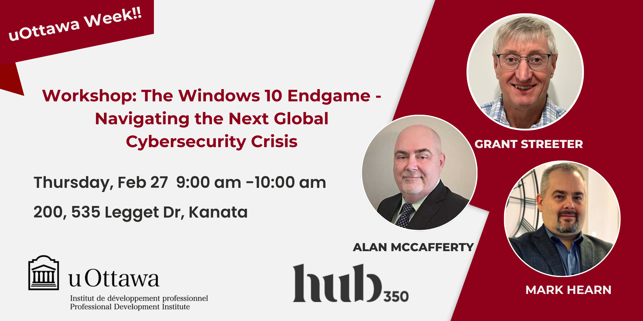 - Alan McCafferty, Directeur de la cybersécurité, Institut de développement professionnel de l’Université d’Ottawa & Analyste d’affaires principal spécialisé en gestion des risques et en sécurité des TI