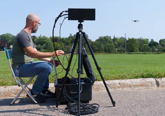 Dr. Drouin reports that tests have been conducted with multiple stakeholders in defence and public safety. “We installed the system in various locations and learned from their feedback what modifications we needed to make to ensure the best value. We doubled the detection range, added a radio link to communicate the detection of a drone and connected the system to command-and-control software,” he adds.