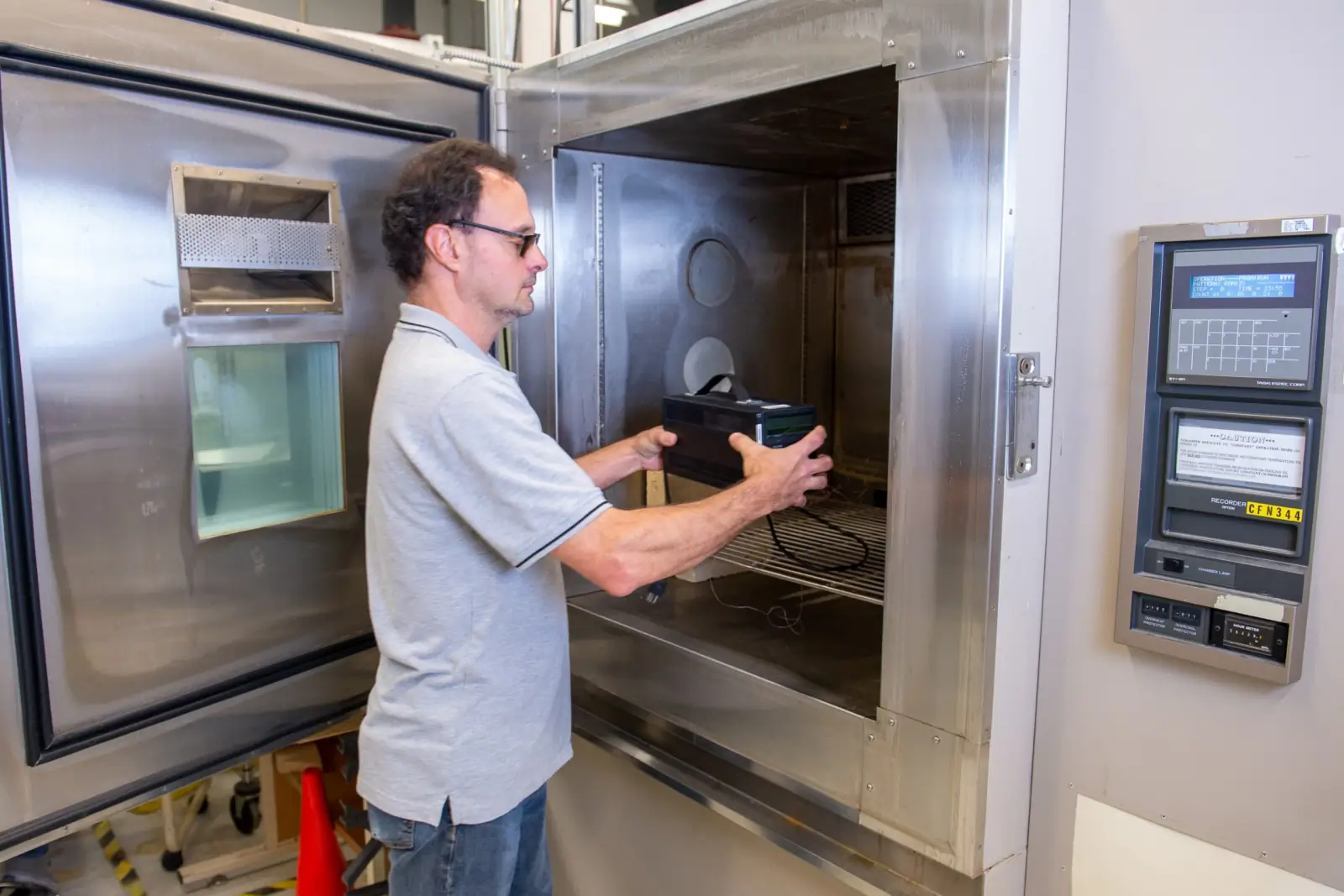 Mark Bamford prepares to perform a temperature test in one of TÜV SÜD’s many thermal chambers.